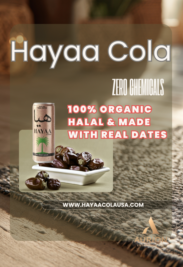 We are proud to present our newest product Hayaa Cola, a refreshing drink made with real dates.